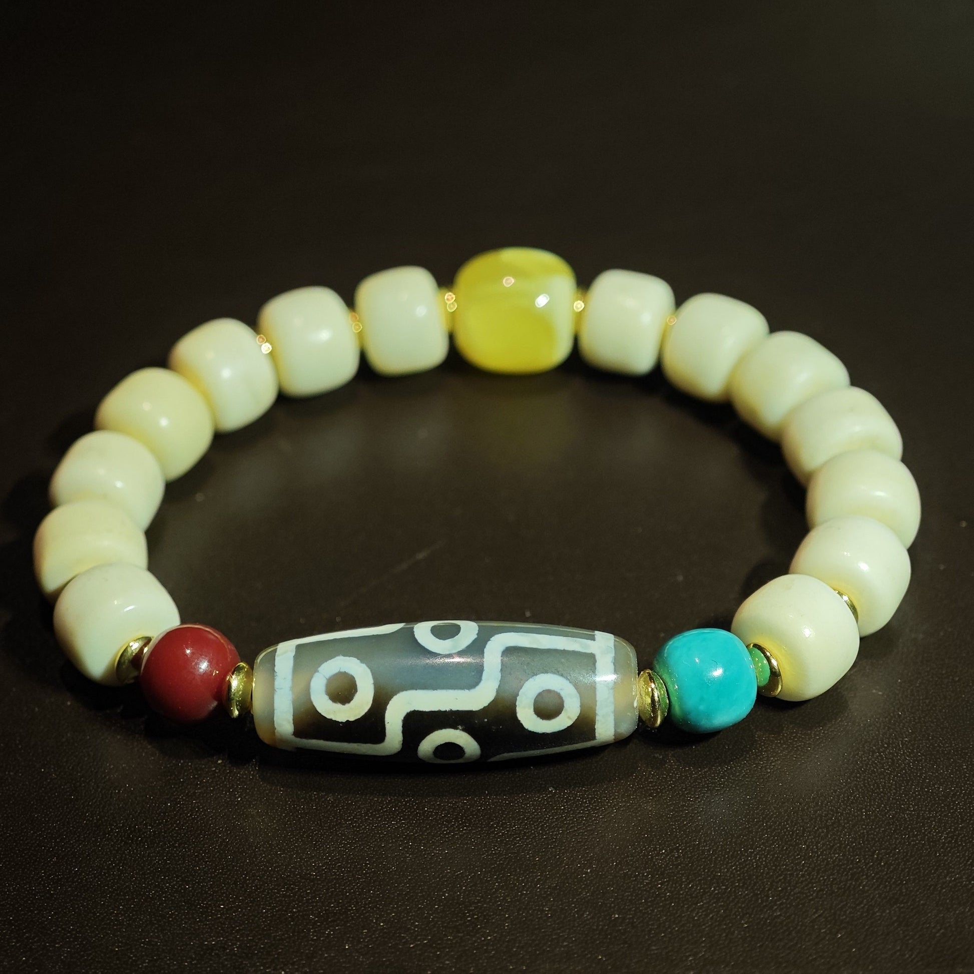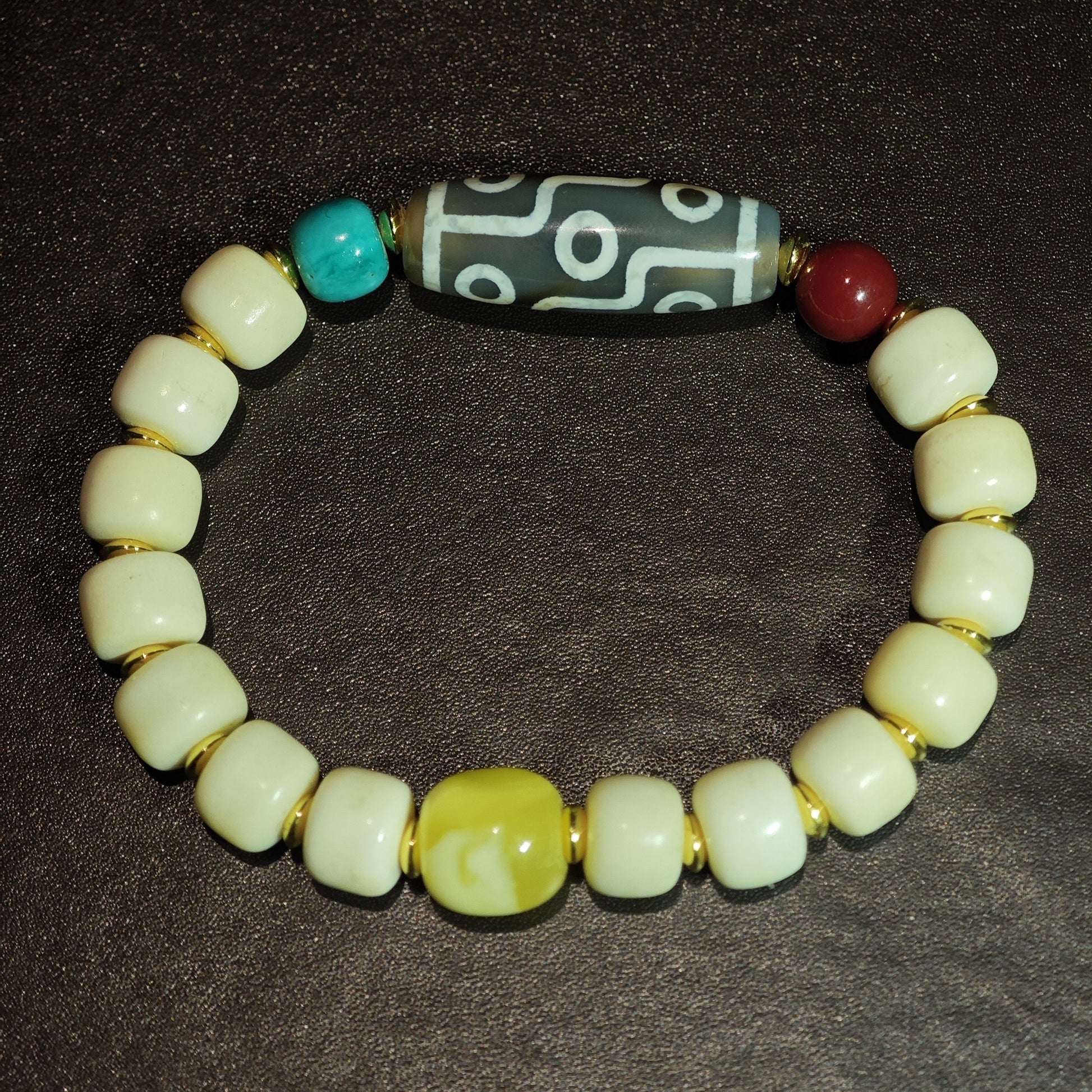 Perfect for meditation, spiritual practices, or as a statement piece, the Sacred Camel Bone Bracelet with Dzi Bead is designed to inspire and protect.